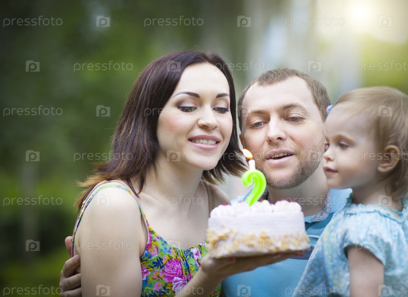 Счастливая семья празднует второй день рождения дочери