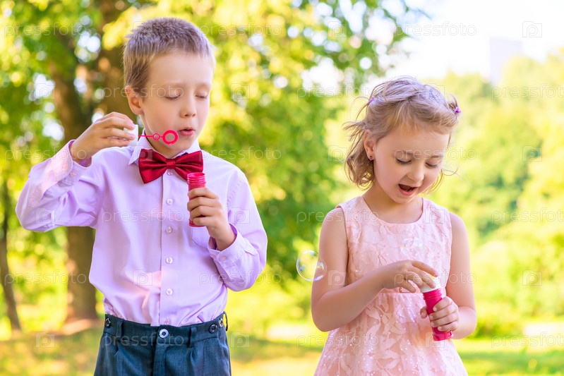 Дети с мыльными пузырями