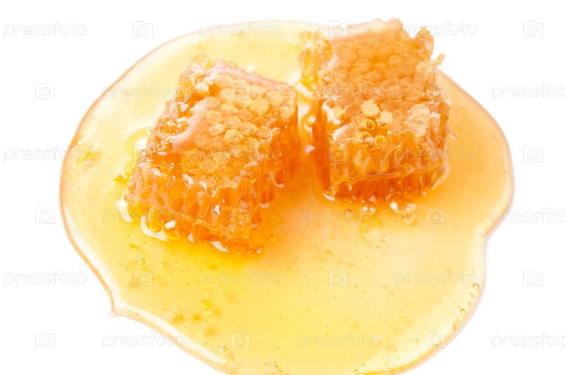Соты и свежий мед, изолировано на белом фоне