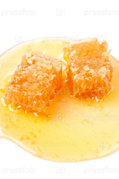 Соты и свежий мед, изолировано на белом фоне