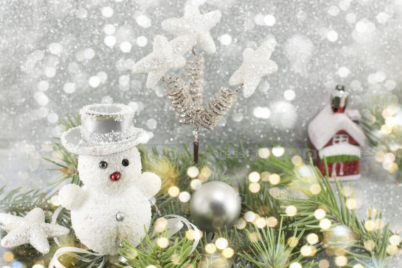 игрушечный снеговик под рождественским деревом