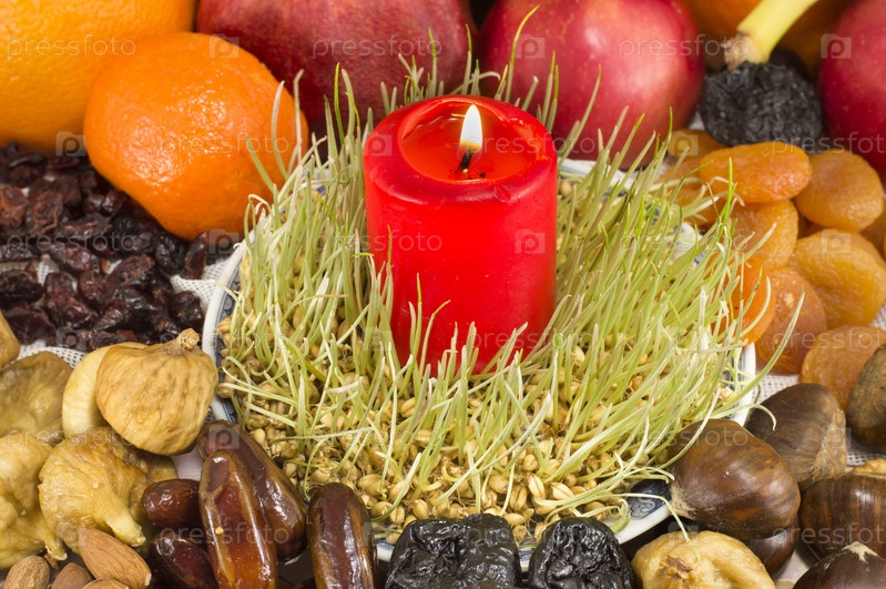 Сухофрукты, фрукты, орехи и свечка