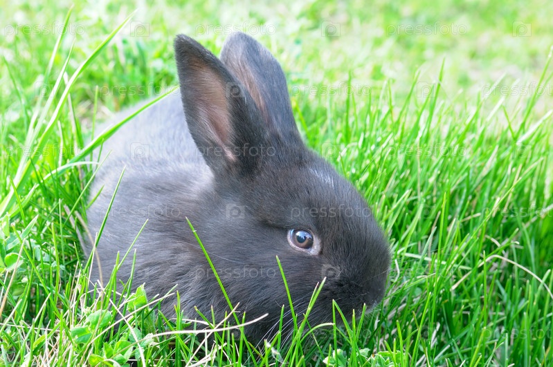 Маленький кролик на фоне зеленой травы