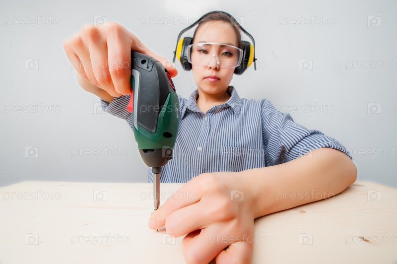 Молодая женщина с дрелью