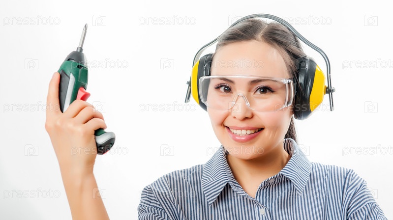 Молодая женщина с дрелью