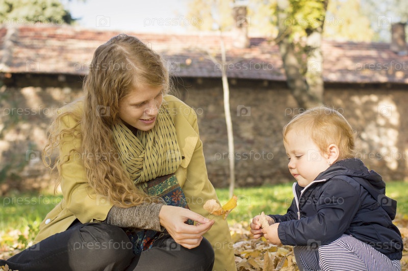 Мама играет с маленькой дочерью в парке
