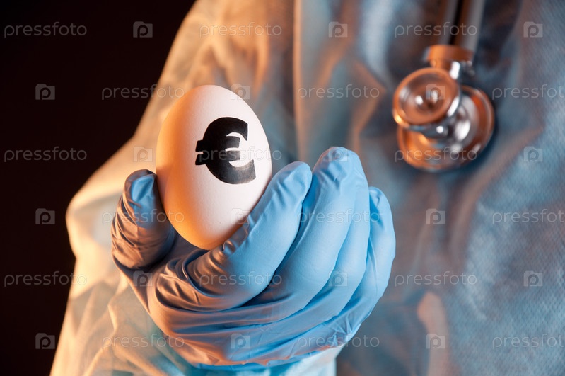 Яйцо со знаком евро в руке ученого, крупный план