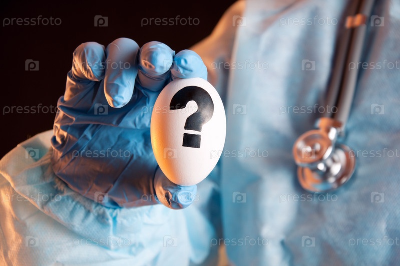 Яйцо со вопросительным знаком в руке ученого