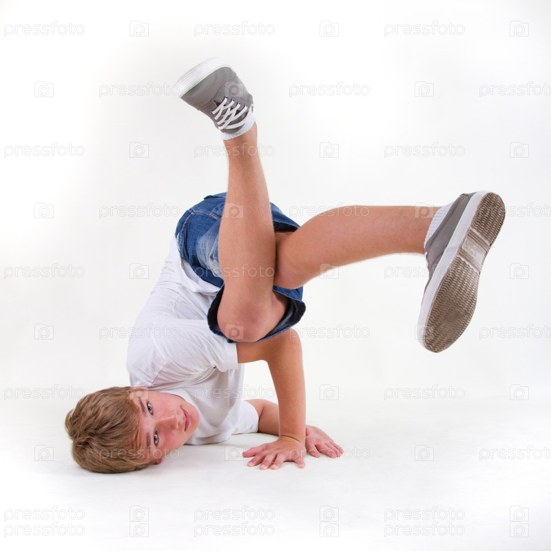 Молодой танцор брейк-данса на белом фоне