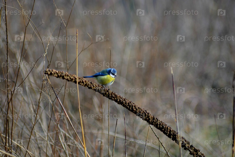 Птица синичка - лазоревка сидит на ветке