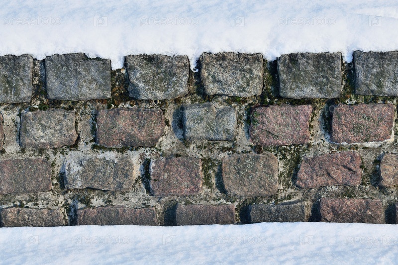 Старинная каменная стена в снегу