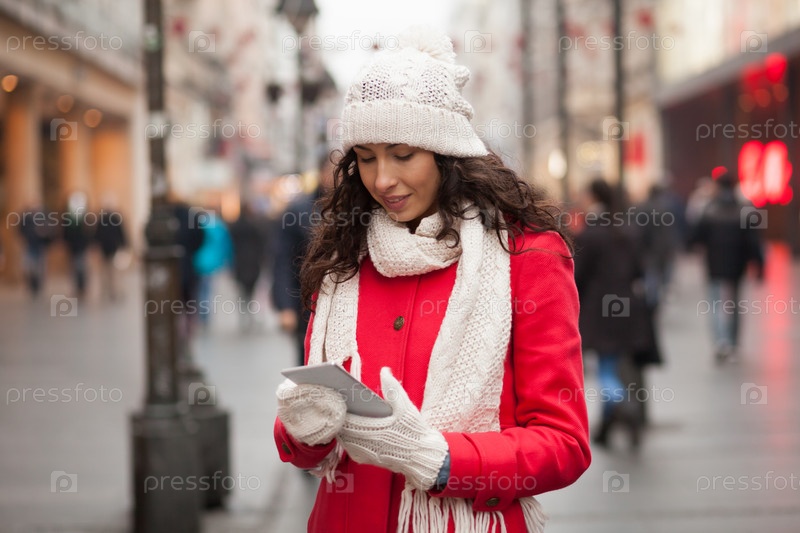 Женщина в красном Пальто в городе