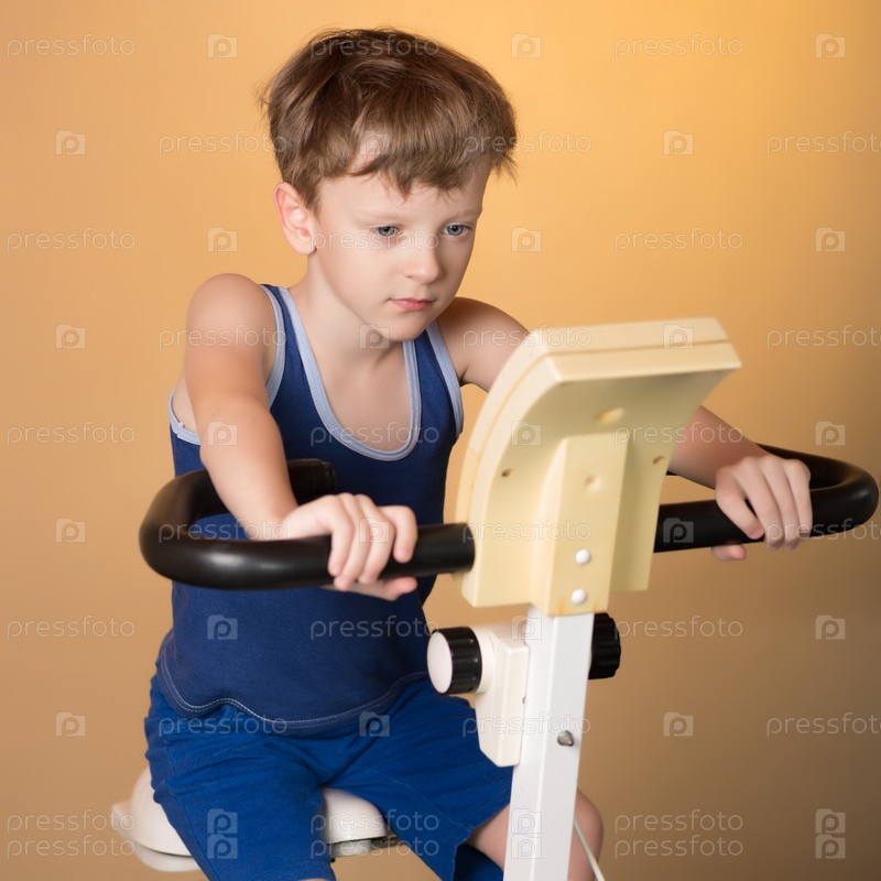 Ребенок на велотренажере. Здоровый образ жизни