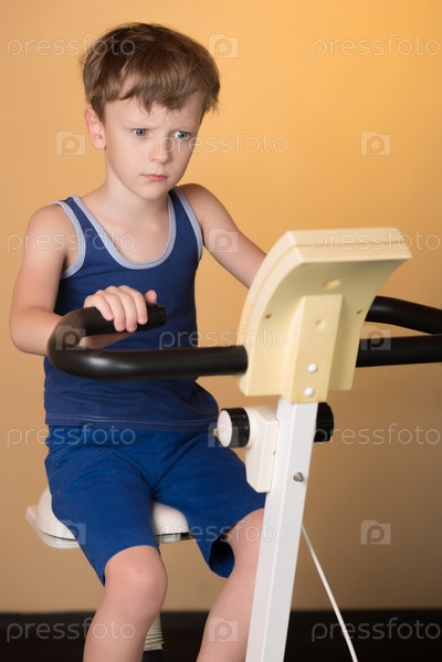 Ребенок на велотренажере. Здоровый образ жизни