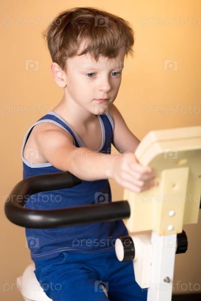 Ребенок на велотренажере. Здоровый образ жизни