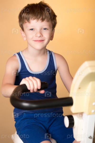 Ребенок на велотренажере. Здоровый образ жизни
