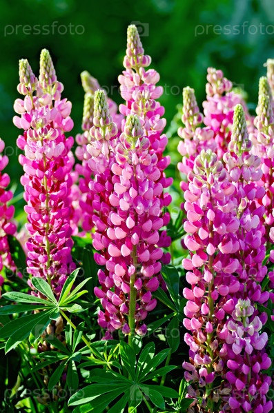 Люпин розовый с листьями
