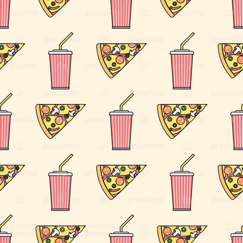 Цветной бесшовный фон с пиццей