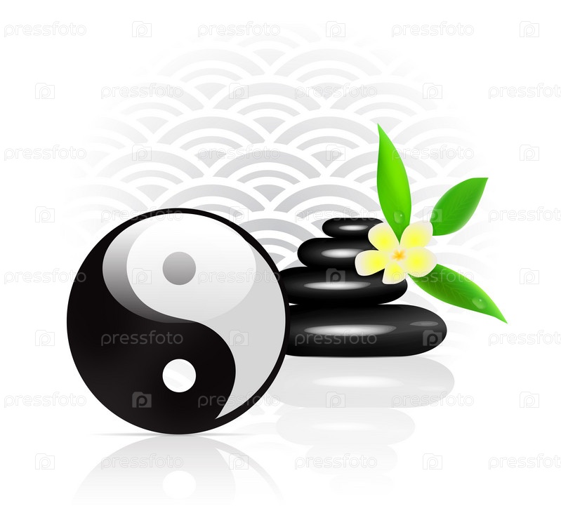 Фэн-шуй. камни для спа и символ инь ян. векторные иллюстрации