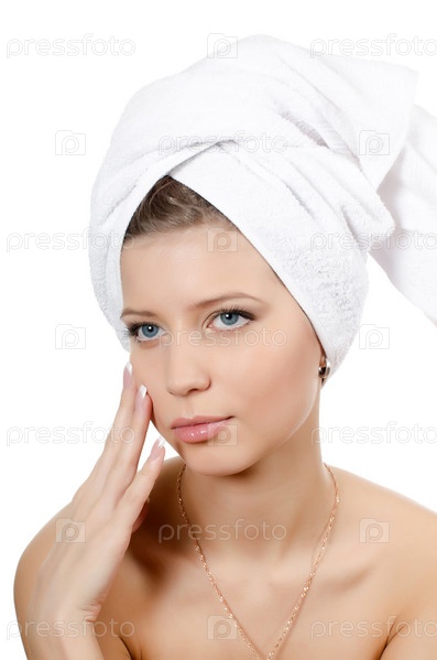 Молодая красивая девушка с полотенцем на голове