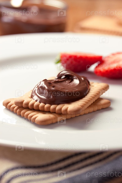 Шоколадная нуга на печенье с клубникой