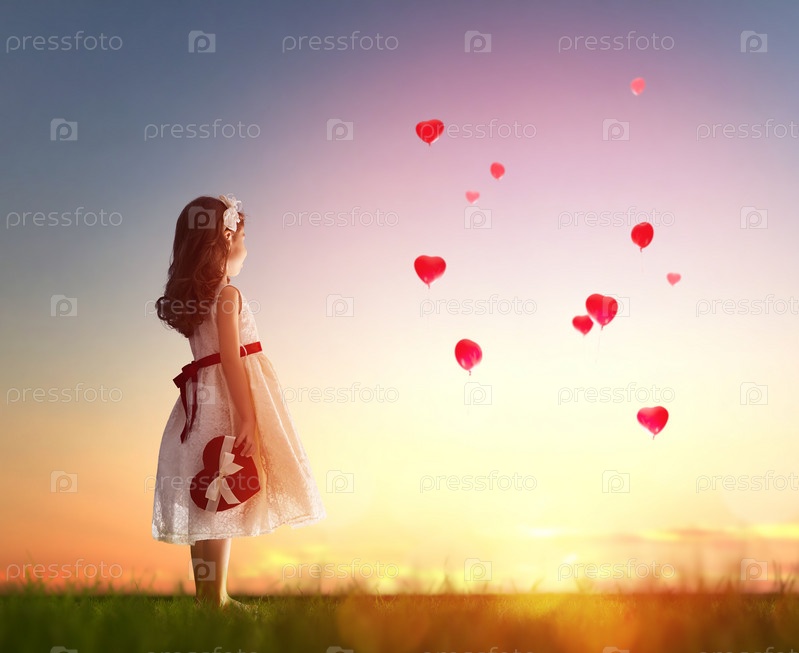 Девушка, глядя на красные шарики