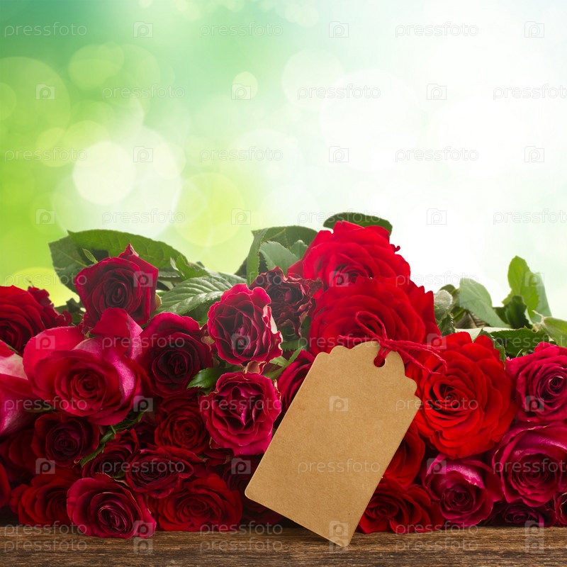 Свежие красные розы с визиткой