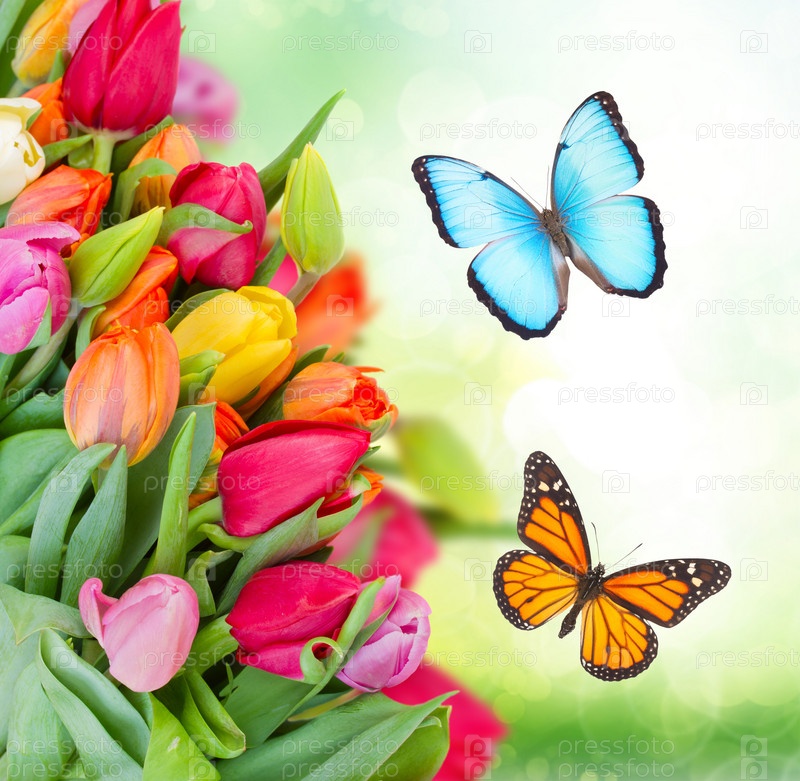 Тюльпаны и бабочки