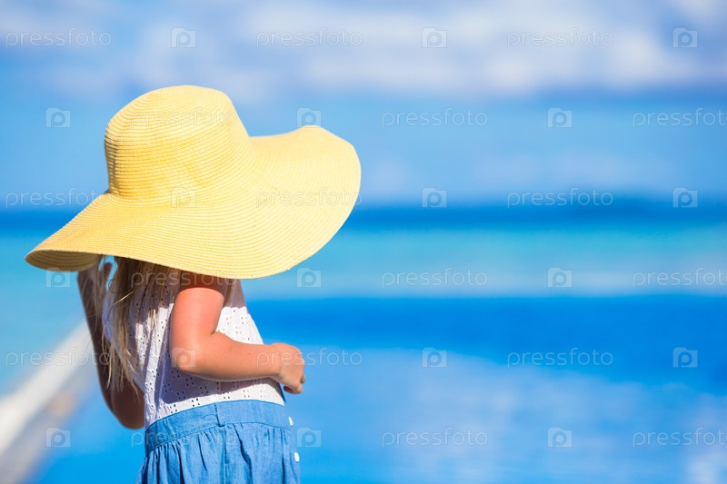 Очаровательная маленькая девочка на пляже во время летних каникул