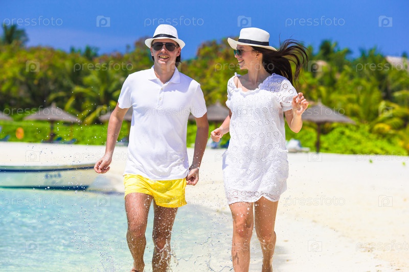 Молодая пара на белом пляже