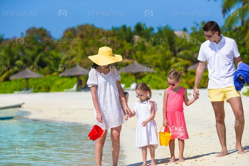 Молодая семья на белом пляже