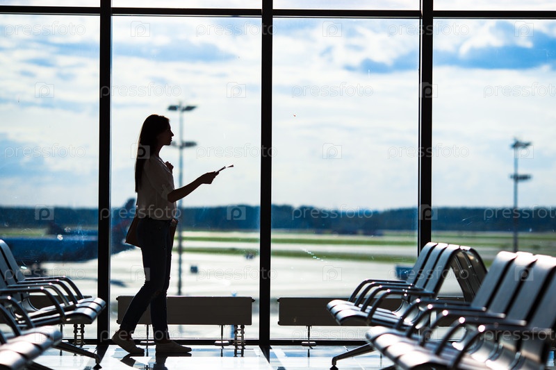 Силуэт женщины в зале ожидания аэропорта