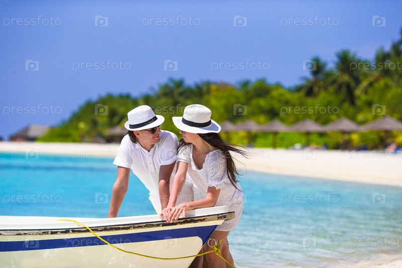 Молодая пара на белом пляже