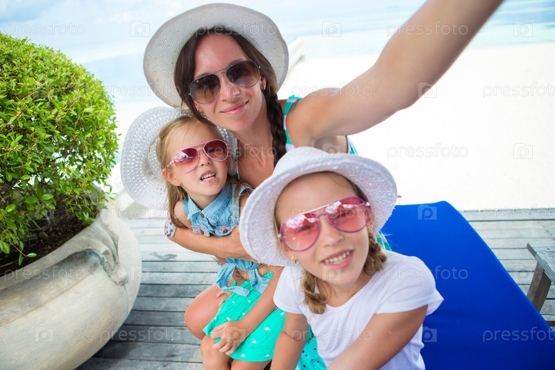 Мать и девочки на тропическом пляже