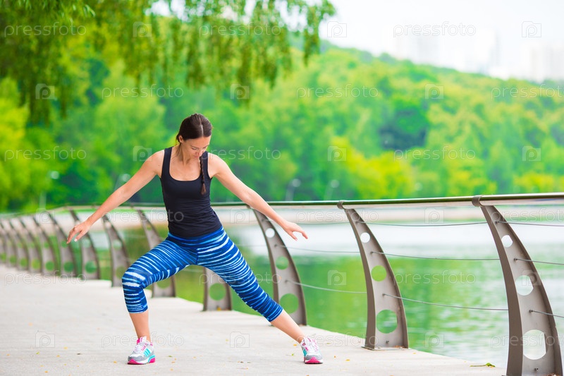 Молодая женщина делает упражнения на открытом воздухе