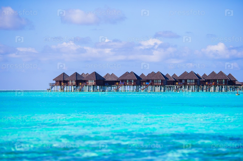 Бунгало на воде и деревянный причал