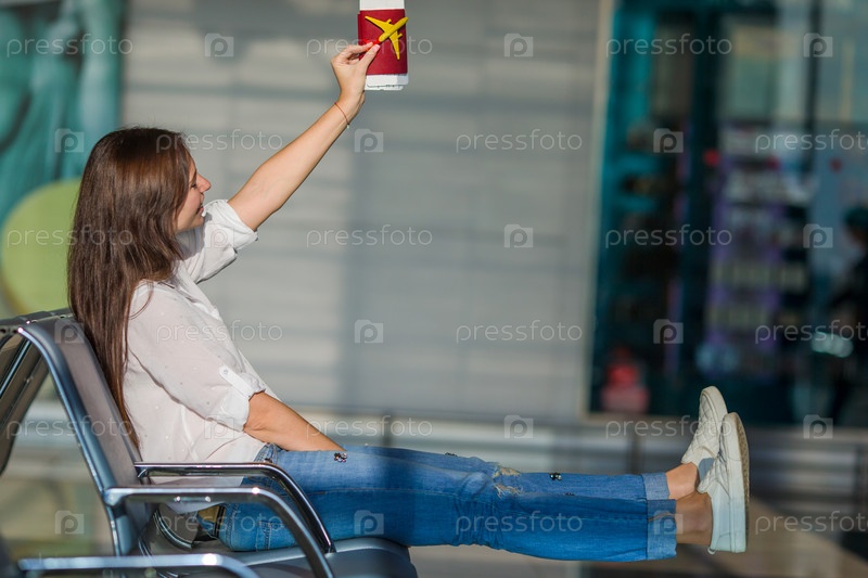 Счастливая женщина в аэропорту