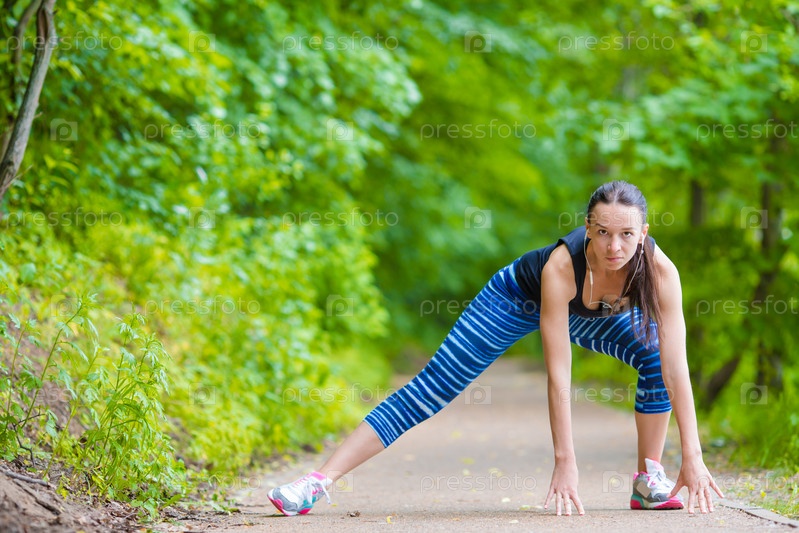 Женщина делает спортивные упражнения на открытом воздухе