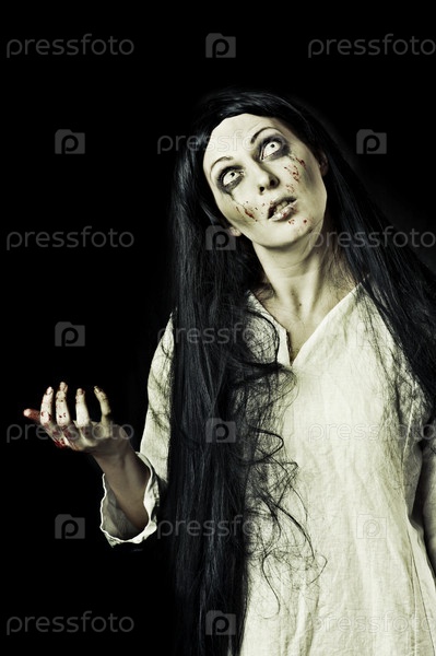 Портрет окровавленной женщины-зомби на черном фоне