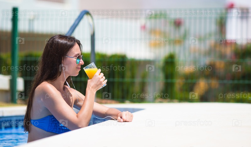 Молодая красивая женщина возле бассейна