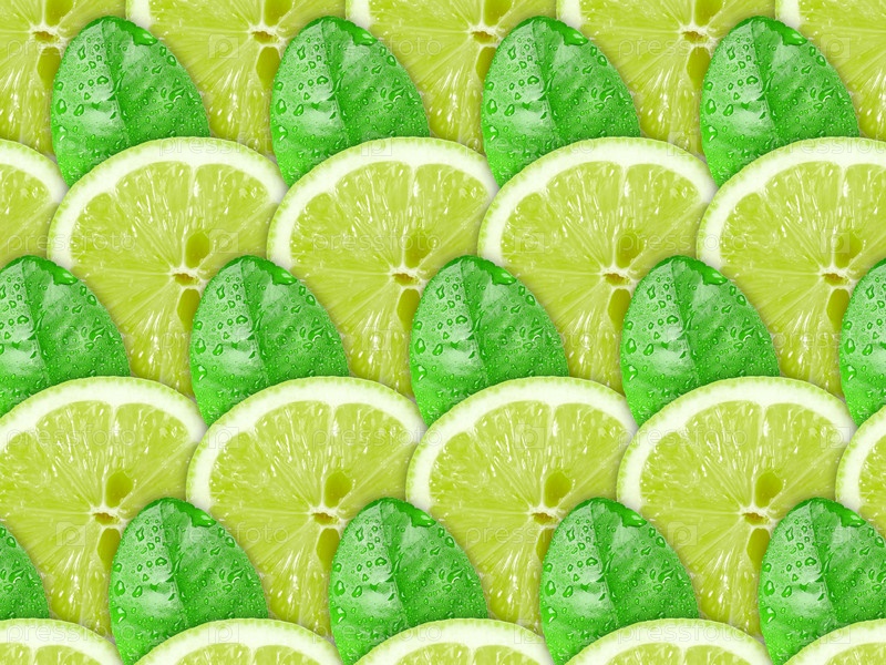 Абстрактный фон с дольками лайма и зелеными листьями