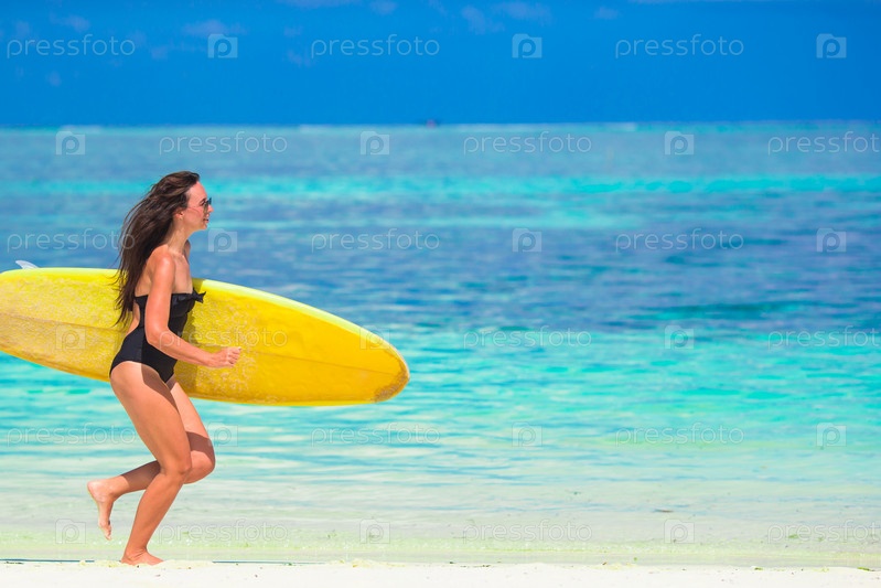 Молодая стройная женщина-серфер