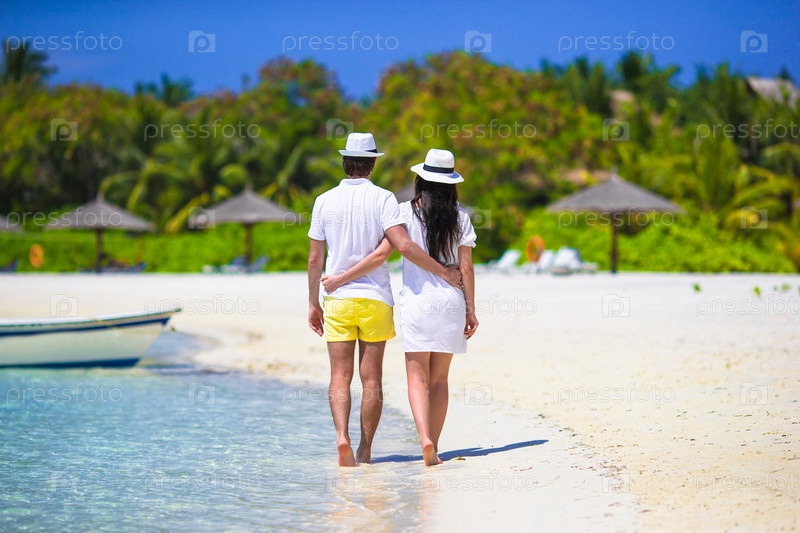 Счастливая пара на белом пляже