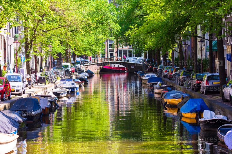 Красивый канал в Амстердаме, Нидерланды