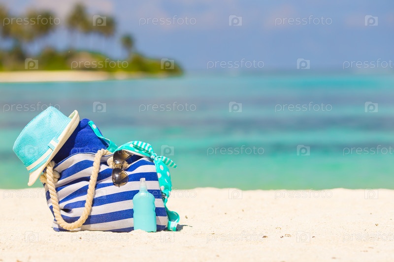 Пляжные аксессуары на белом тропическом пляже