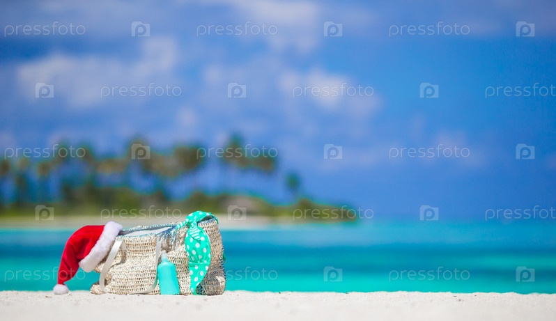 Пляжные аксессуары на белом тропическом песке