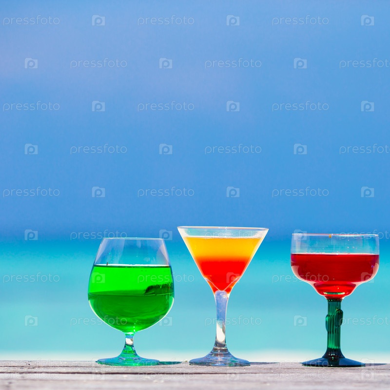 Красочные экзотические вкусные коктейли в открытом кафе