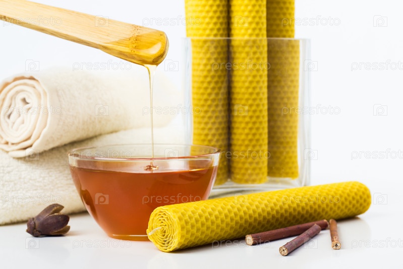 Медовая свеча в прозрачной вазе с медом и корицей