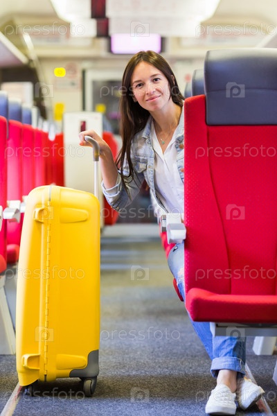 Девушка путешествует с багажом