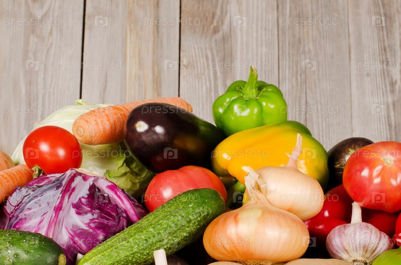 Разные овощи на деревянном фоне